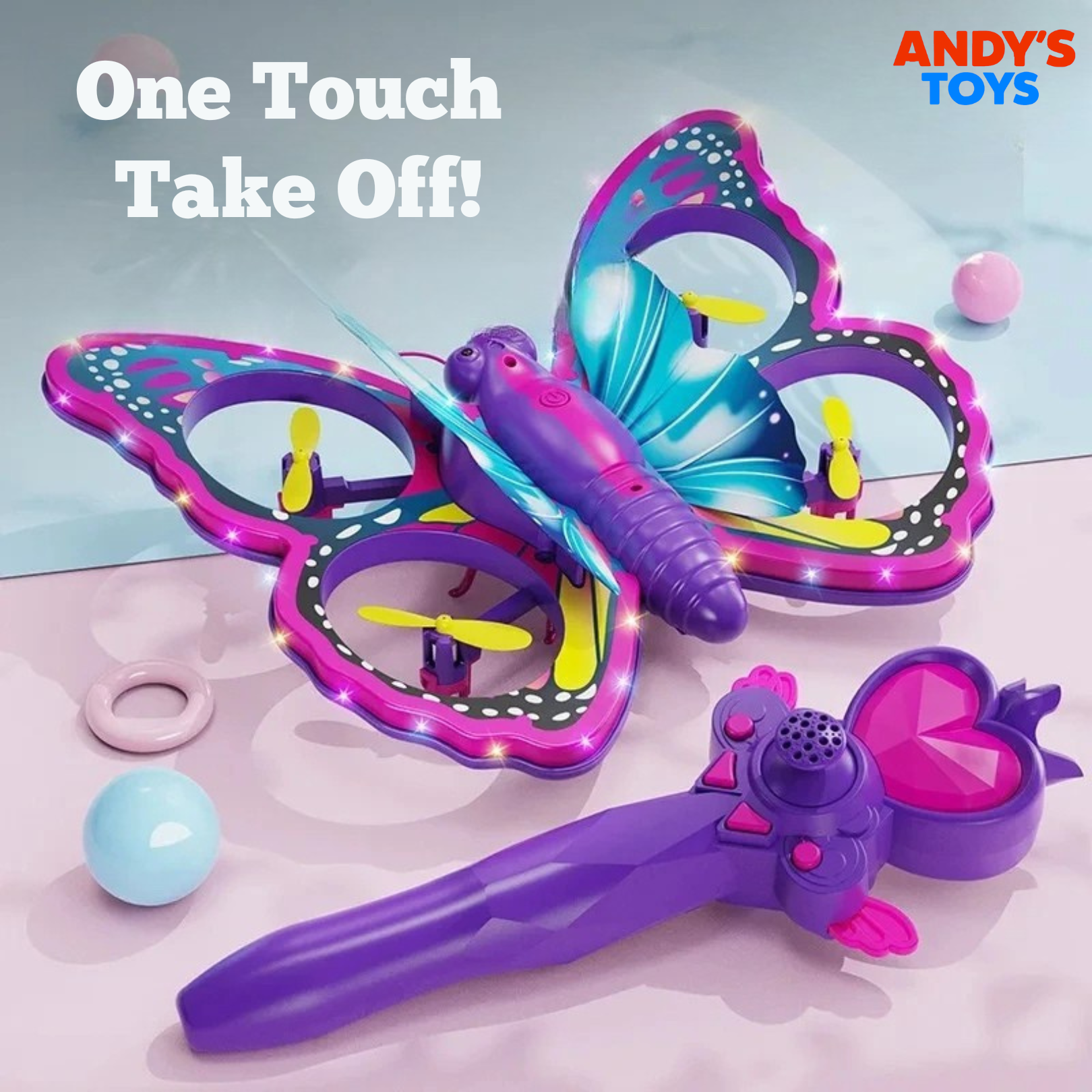 Kids can soar with one-touch takeoff, stable hovering, and easy controls made for beginners. The crash-resistant design keeps flights safe, while colorful LED wings make every adventure magical.